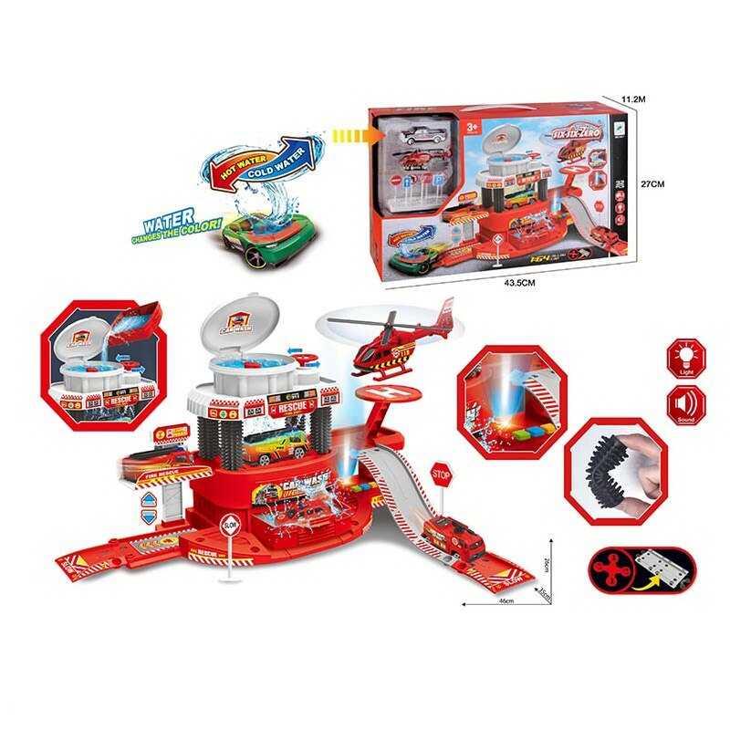 Така іграшка зацікавить кожного маленького автолюбителя, адже вона не тільки поєднує у собі трек, підіймач та автомийку, але й у комплекті із нею йде чудова металопластикова машинка, корпус якої магічно змінює колір від контакту із теплою водою.