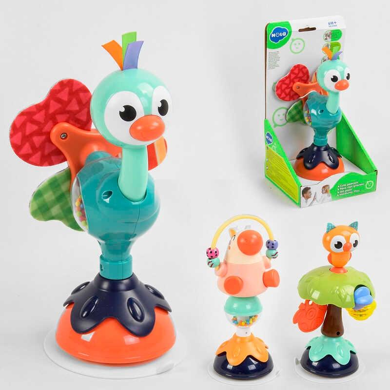 Брязкальце на присосці від торгової марки Hola – розвиваюча іграшка з рухливими елементами різної текстури. Всі деталі виготовлені з нетоксичних, безпечних для здоров’я малюків матеріалів.