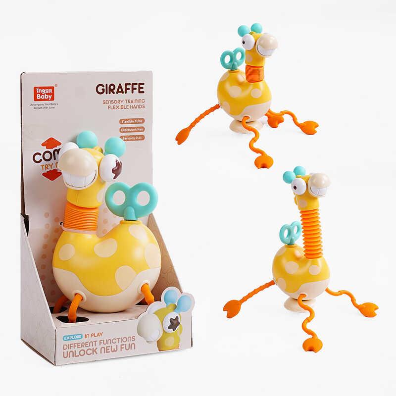 Брязкальця є важливими іграшками для здорового розвитку немовляти. Вони бувають різних видів і різних фактур, що допомагають дитині розвивати моторику рук та відчуття дотику. А ця весела жирафа зібрала у собі все, що необхідно для маленьких ручок малюка — ніжки тваринки рухаються вверх та вниз (якщо потягнути за одну кінцівку, то інша стане коротшою), шия жирафи регулюється і сприятиме розвитку логічного мислення у маленького гравця. Вушка та ніжки зроблені з м’якої гуми, що допоможе заспокоїти біль від прорізування зубів. Така іграшка стане найкращим другом для вашої дитини, адже її можна і покрутити, і потягнути, і помилуватися милим дизайном.