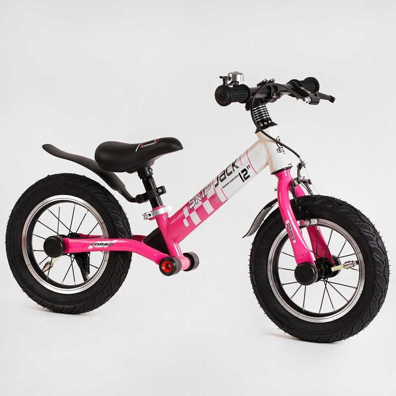 Велобег Corso “Skip Jack” 25025 РОЗОВО-БЕЛЫЙ, надувные колеса 12″, стальная рама с амортизатором,…