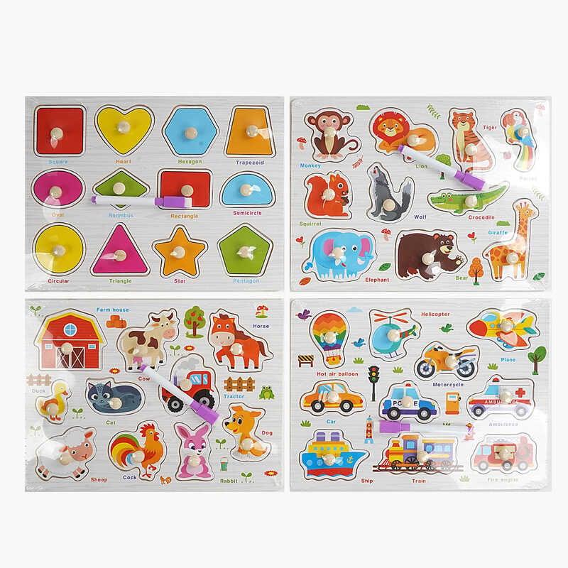 Вкладиші C 67047 дерев`яні, 2 в 1, дошка для малювання, маркер, у плівці, ВИДАЄТЬСЯ МІКС ВИДІВ