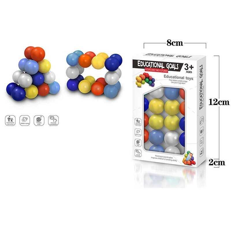 Іграшку виконано у вигляді різноколірних кульок, поєднаних між собою. Дитина зможе збирати різноманітні фігурки з цих кульок, а також їх просто приємно крутити в руках, як антистрес.