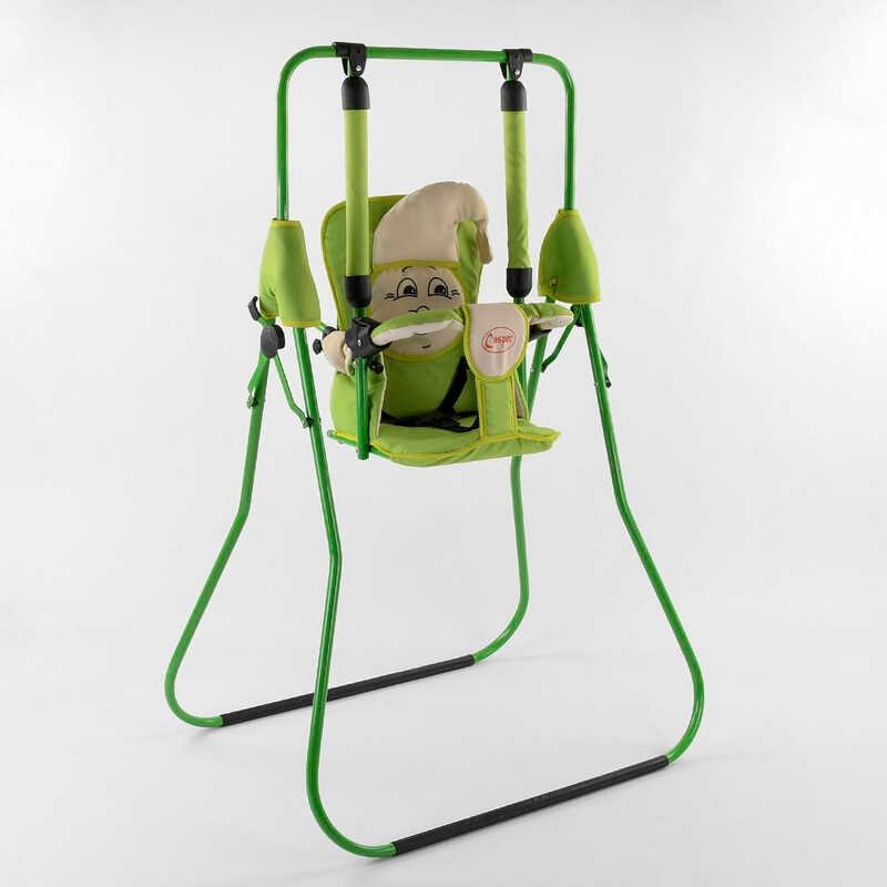 гр Гойдалки для підлоги “Алінка” 205478 зелений каркас, зелена матерія, бежевий гномик