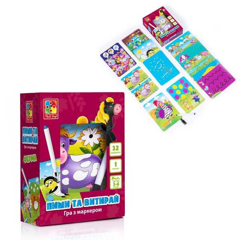 гр Гра настільна “Пиши та витирай. Ферма” VT5010-19 “Vladi Toys”, 34 магнитных элемента