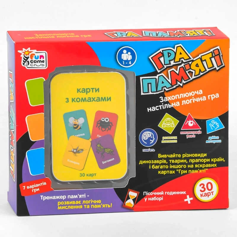 гр Карточная игра “Гра пам`яті – Комахи” UKB-B 0045-6 “4FUN Game Club”, песочные часы, на украинс…