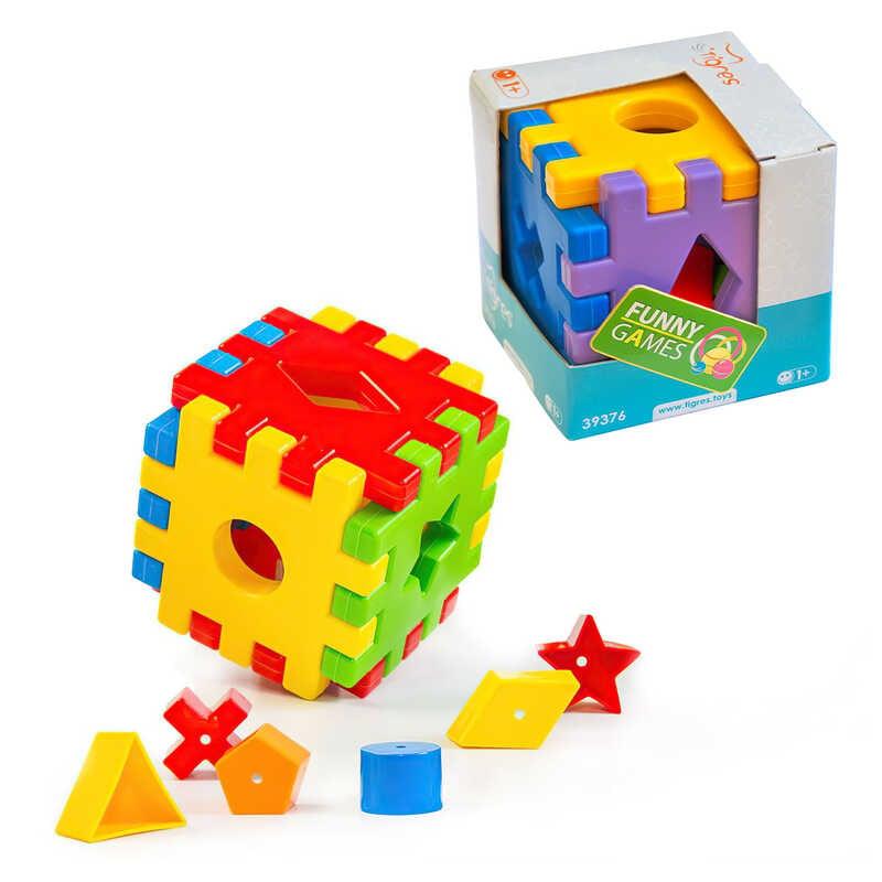 Куб містить у собі 2 гри в 1 – сортер та конструктор.