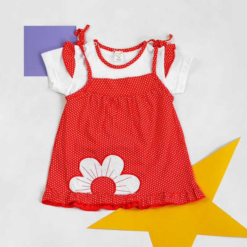 гр КП-204 “1” /р.74/ /красный/ Комплект для девочки : сарафан на завязках, футболка