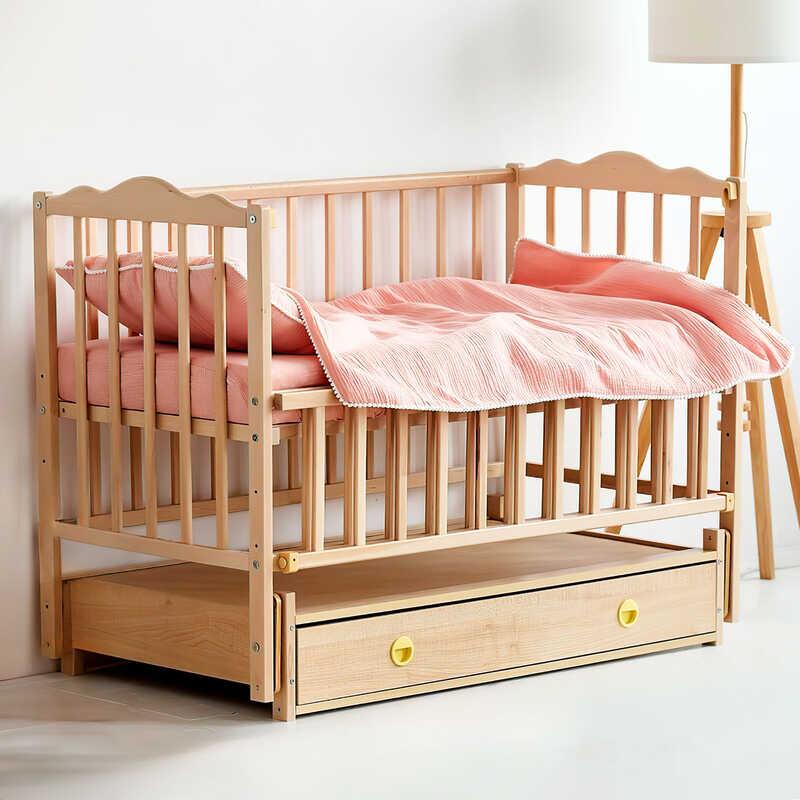 гр Ліжечко дитяче “Ангеліна” шарнір-підшибник з відкидною боковиною+шухляда, бук