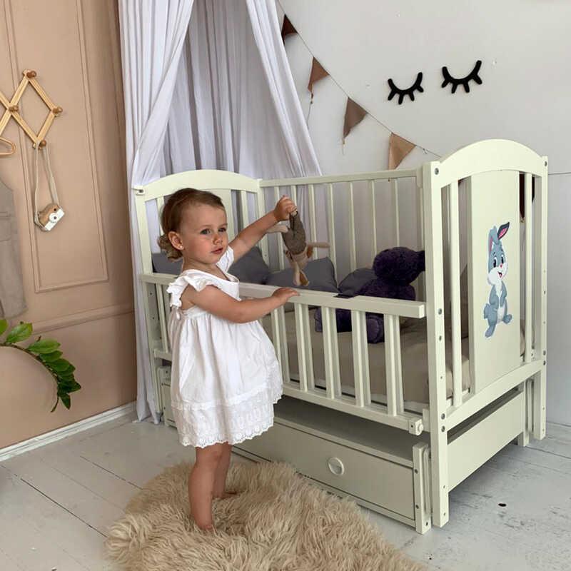 гр Ліжечко дитяче ЛІЛІ “Зайчик” шарнір-підшибник з відкидною боковиною+шухляда,