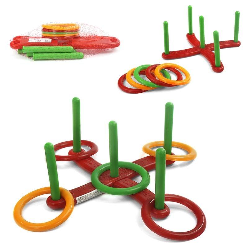 Кольцеброс – это динамичная спортивная игра, которая будет развивать командный дух всей семьи!На специальной крестовине устанавливается пять вертикальных штырей, на которые игрок должен забросить с некоторого расстояния разноцветные кольца.Особенности:- развивает ловкость, волю к победе и тренирует меткость;- высококачественная первичная пластмасса;- 5 разноцветных колечек;- на основании стойки нанесены цифры, которые показывают количество набранных очков.