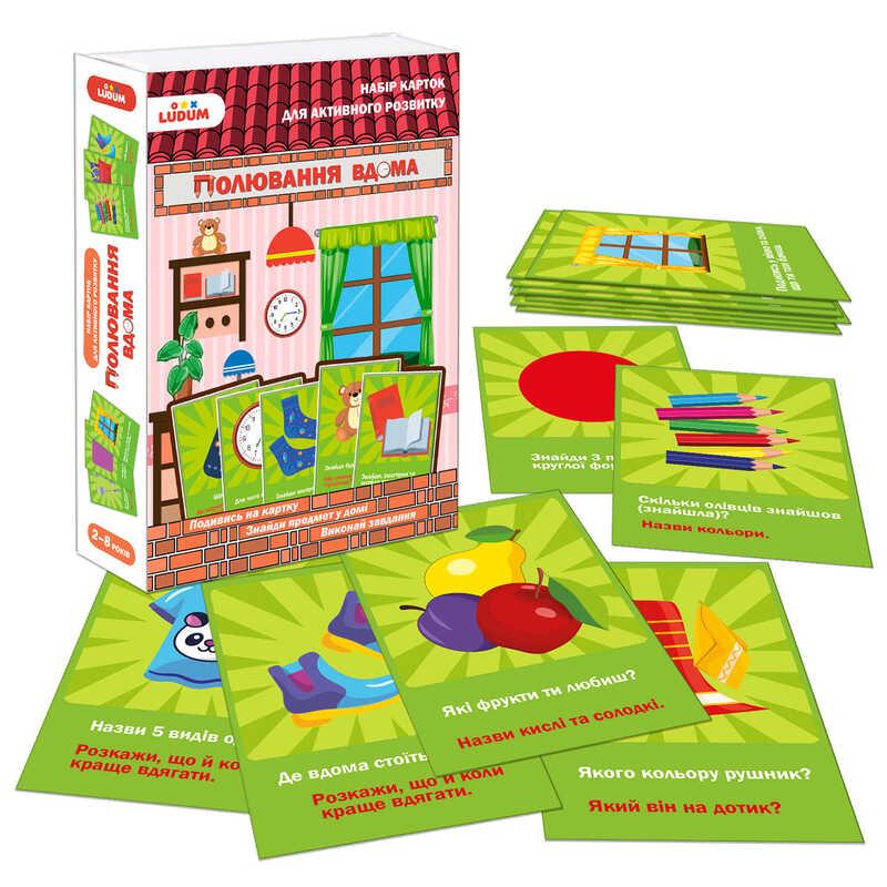Гра з картками Полювання вдома – це набір розвиваючих карток для активного розвитку. Картки ідеально підходять для дітей від 2 до 7 років. “Полювання вдома” розвиває мовлення, спостережливість, увагу та уяву.