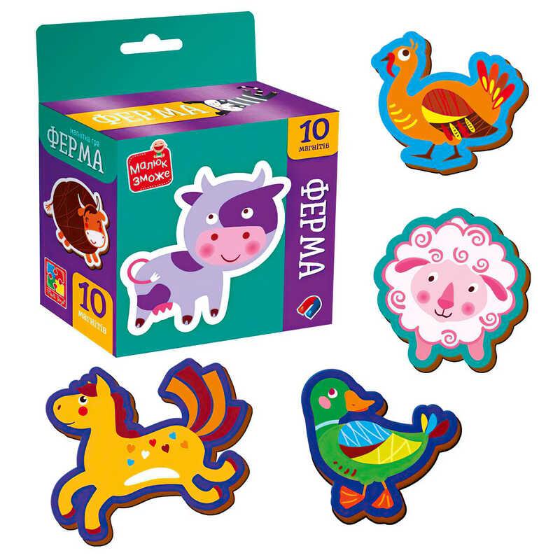 Набір магнітів “Ферма” – корисний набір серії “Малюк зможе”, що відкриє для дитини цілий світ цікавих тем. Набір складається з десяти магнітних елементів, що зображують тварин і птахів, яких утримують на фермі.