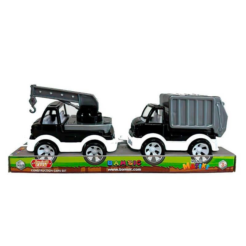 До цього набору входить дві машинки – кран та сміттєвоз, які допоможуть навести чистоту в іграшковому місті. Вивезти сміття, допомогти перевезти габаритні речі — це все, і навіть більше зможуть ці 2 машинки у чорно-білому кольорі. А милий реалістичний дизайн порадує вашу дитину і навчить її відповідальності та розумінню дорослих професій.