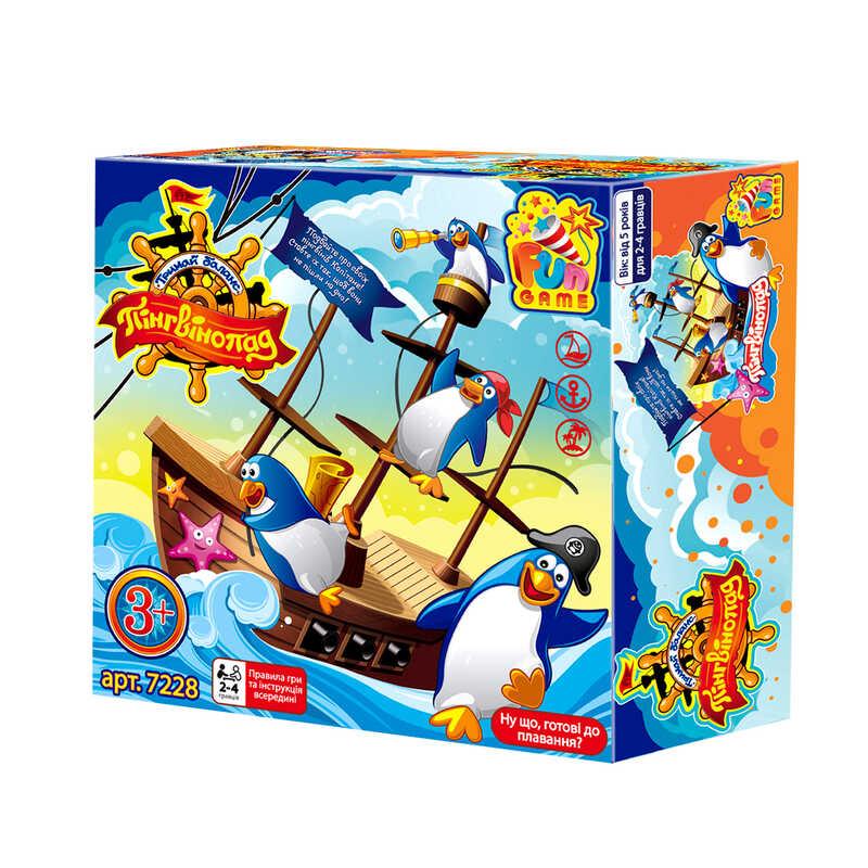 Настільна гра «Тримай баланс. Пінгвінопад» 7228 – це кумедна гра із захоплюючим сюжетом, який змусить кожного гравця стати капітаном корабля і вдало зібрати команду для морської подорожі, зберігши в цілісності екіпаж і сам корабель!