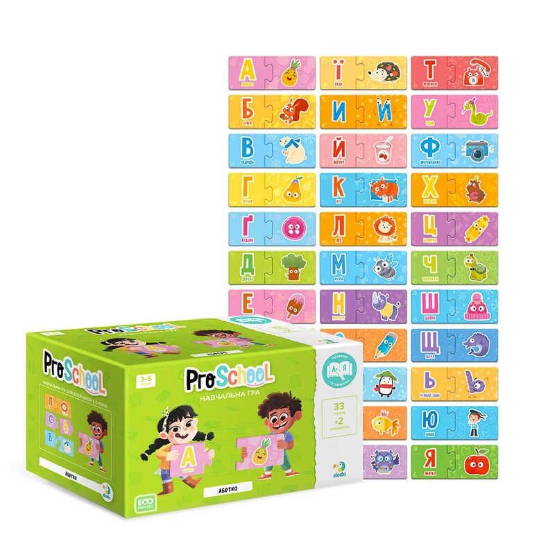 Дітки мають співвіднести дві частинки пазла одного кольору, одна половинка якого містить літеру, на яку починається слово зображеного на іншій половинці предмета чи тваринки.