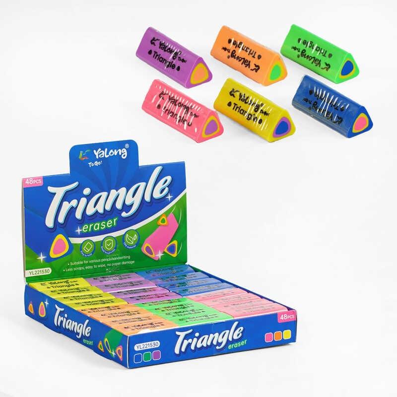 Застосування – для видалення графітових написів. Форма – трикутник. Колір – різнокольорові. Матеріал – гума. У блоці – 48 штуки.