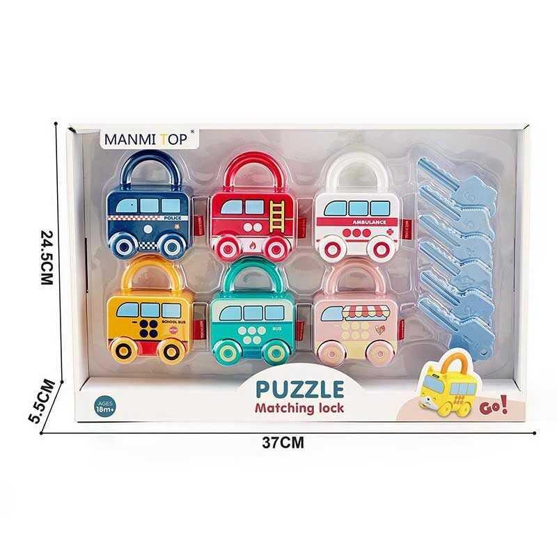 Грайся та розвивайся із захопленням! Шість замочків виконані у вигляді машинок. Серед них – швидка допомога, шкільний автобус, пожежна машина та інші. До кожного замка необхідно підібрати відповідний ключик. В процесі гри дитина розвиватиме дрібну моторику рук та логічне мислення.