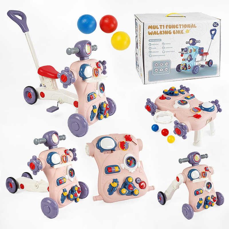 – 7в1: ходунки, велобіг, самокат, велосипед, столик, ігрова панель;