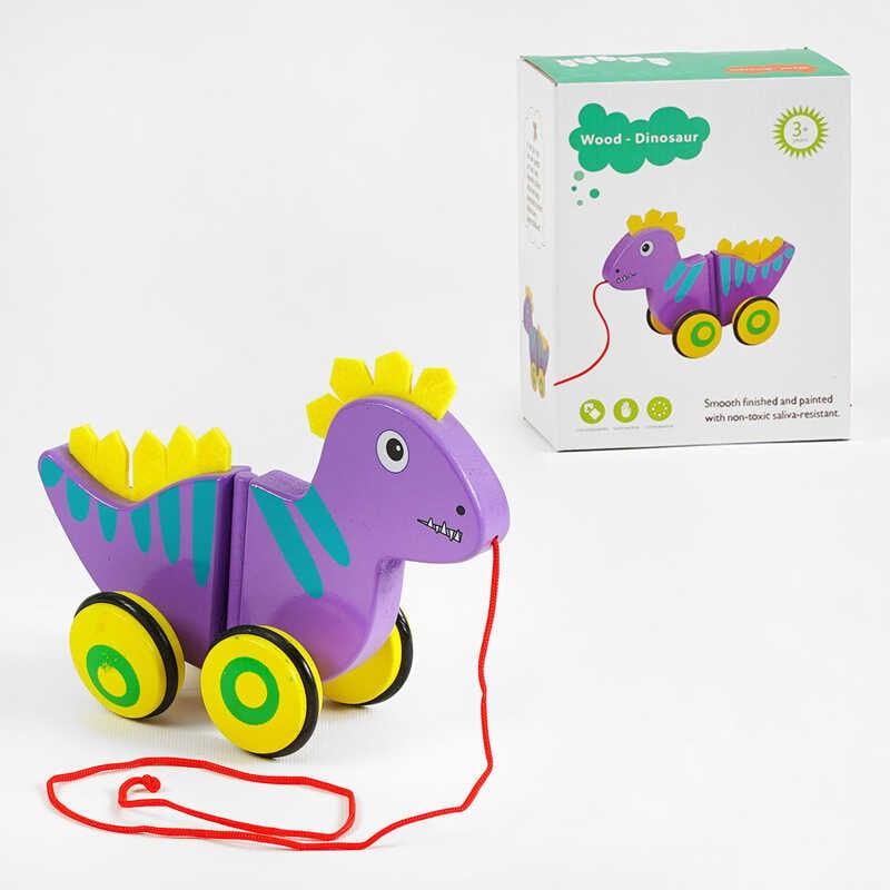 Каталка C 63987 “Динозаврик”, дерев’яна, виляє хвостом, фетрові шипи, в коробці