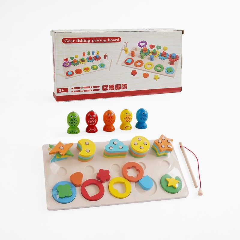 Хочеш – лови рибку, а хочеш – грай у сортер! Дошка та елементи гри виготовлені з дерева, добре відшліфовані, мають якісне яскраве покриття фарбою. Спеціальні поглиблення на ігровій панелі призначені для деталей відповідних форми та розміру. На дошці також можна розмістити кольорові рибки, які легко “зловити” за допомогою магнітної вудки.