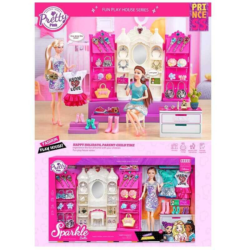 Чарівна дівчинка нарешті склала свій гардероб мрії й тепер хоче показати всім свої стильні наряди. Але окрім модних речей, у гардеробі стоїть гарний туалетний столик, на якому лялечка зберігає всі свої прикраси, та містка шафа.