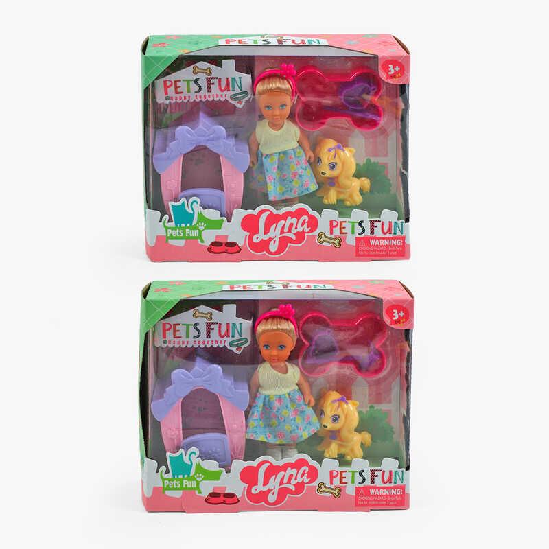 У комплект входить міні лялечка, яка одягнена в стильне літнє плаття. У неї довге волосся, блакитні очі та мила усмішка. Також в комплекті з лялькою, дитина знайде улюбленого улюбленця та аксесуари для догляду за ним.