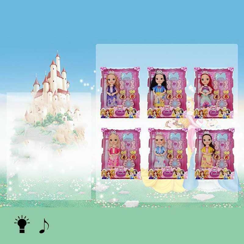 Улюблена казкова принцеса у цікавому втіленні! Лялька з великими виразними очима, довгим волоссям та яскравою сукнею стане справжньою прикрасою лялькової колекції. Рухливі ручки та ніжки дають можливість ляльці приймати будь-яке положення. Вбудований музичний чіп додасть грі чарівного настрою. Присутні й додаткові аксесуари – гребінець, чарівна паличка й прикраси для волосся.