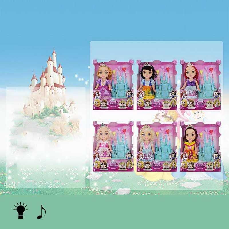Улюблена казкова принцеса у цікавому втіленні! Лялька з великими виразними очима, довгим волоссям та яскравою сукнею стане справжньою прикрасою лялькової колекції. Рухливі ручки та ніжки дають можливість ляльці приймати будь-яке положення. Вбудований музичний чіп додасть грі чарівного настрою. Присутні й додаткові аксесуари – діадема, казковий замок та повітряні кульки.