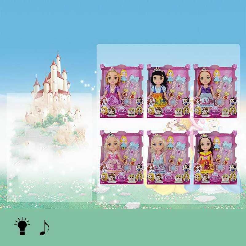 Улюблена казкова принцеса у цікавому втіленні! Лялька з великими виразними очима, довгим волоссям та яскравою сукнею стане справжньою прикрасою лялькової колекції. Рухливі ручки та ніжки дають можливість ляльці приймати будь-яке положення. Вбудований музичний чіп додасть грі чарівного настрою. Присутні й додаткові аксесуари – лялька, гребінець, чарівна паличка й прикраси для волосся.
