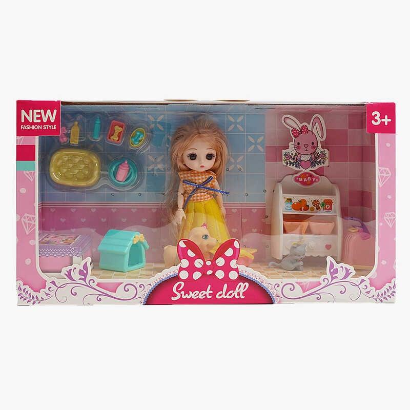 Лялька R 100-155-33 15 см, імітація скляних очей, шарнірні суглоби, аксесуари, в коробці