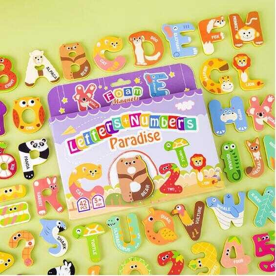 Магніти у наборі мають м’яку фомову основу, тому вони міцні та об’ємні. Кожен магнітик має не тільки яскраву ілюстрацію, але й підпис англійською мовою, тому ваша дитина розпочне своє вивчення англійської мови весело та у процесі цікавої гри.