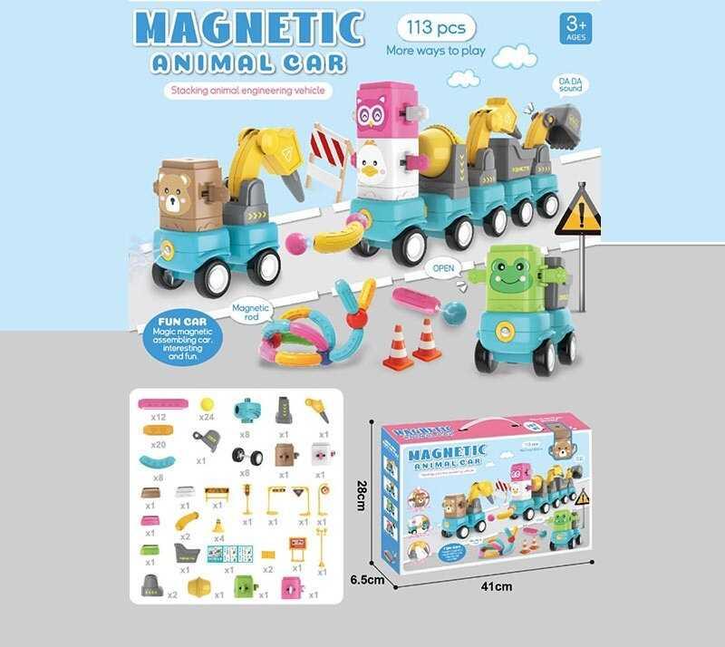 Магнітний конструктор 158-62 113 деталей, рухомі елементи, тріскачка, в коробці