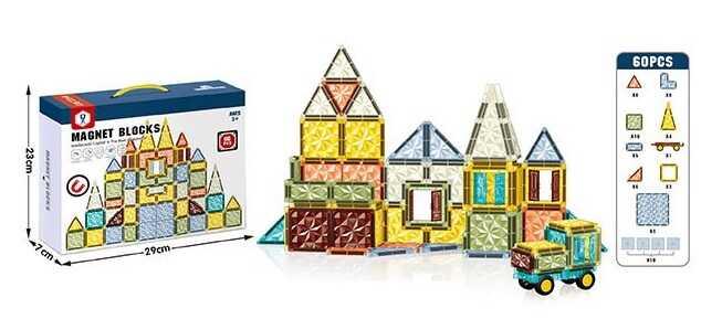 Магнітний конструктор HD 158 A 60 деталей, 1 основа для машинки, в коробці