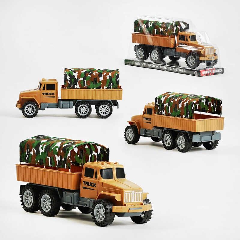 Військова вантажівка стане головним екземпляром автомобільної колекції хлопчика! Модель відрізняється тематичним забарвленням, чудовою деталізацією та написами. Місткий вантажний кузов накриває текстильний тент з елементами маскування. Машина обладнана інерційним механізмом, який дає можливість набрати велику швидкість та самостійно рухатись у заданому напрямку.