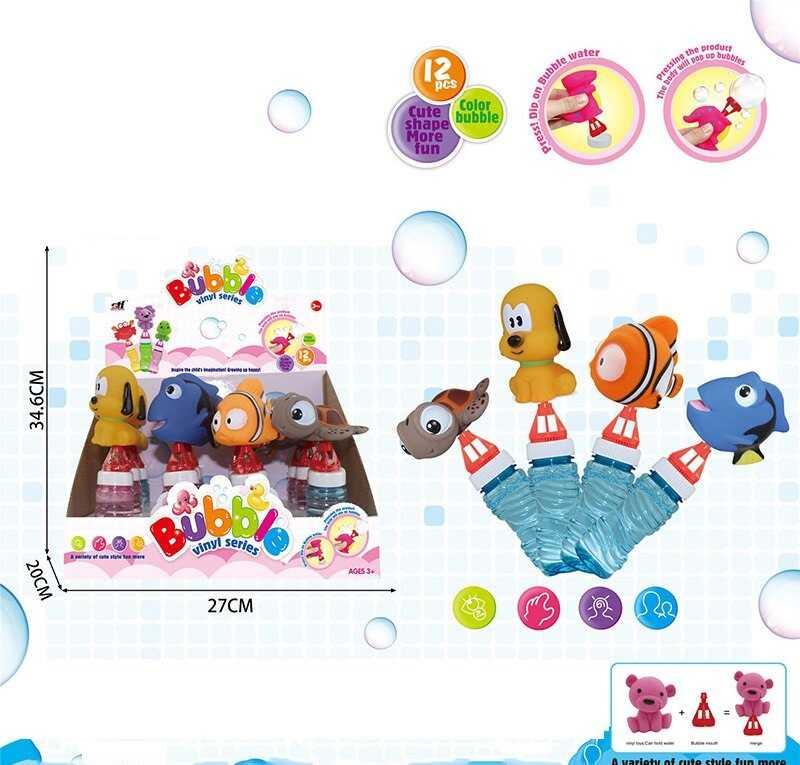 – бульбашки надуваються натисканням на гумову фігурку тваринки;