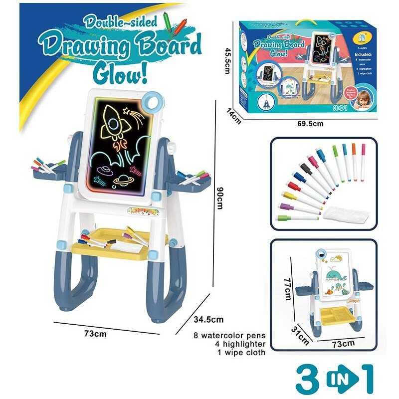 – основа-планшет має яскраве різнокольорове підсвічування та працює від батарейок типу “ААА” (не додаються);