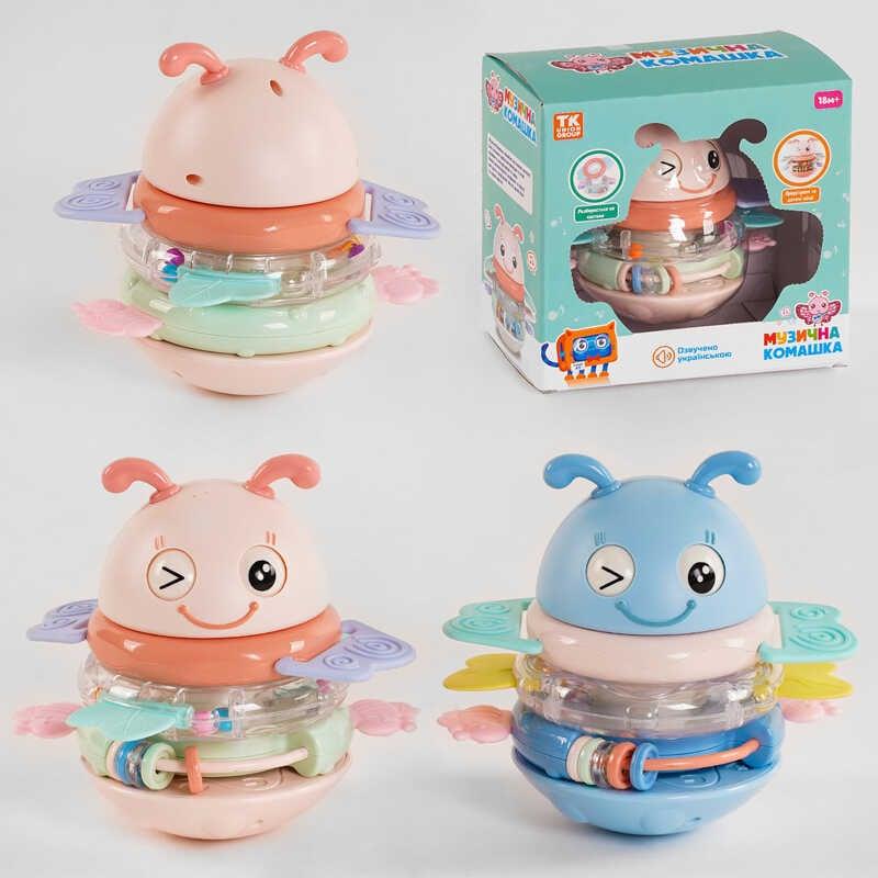 Удивительная маленькая букашка от “ТК Group” – настоящая находка для родителей. Она выполняет роль сразу нескольких полезных вещей для малыша: погремушек, прорезывателей и веселой музыкальной игрушки с украинским озвучиванием.Столько всего интересного в одной поразительной игрушке.Особенности: – соответствует техническому регламенту безопасности игрушек;- выполнена из качественных полимерных материалов;- игрушка разбирается на части, ребенку будет интересно разбирать и складывать ее снова как пирамидку;- воспроизводит 3 веселые песни на украинском языке, а также забавные звуки;- состоит из трёх погремушек, которые также выполняют роль прорезывателей;- работает от 2-х батареек ААА (не входят в комплект);- отлично проработанный дизайн игрушки и нежное цветовое сочетание с первых секунд привлекают внимание малыша;- дно игрушки сделано по принципу неваляшки;- для детей от 18 месяцев.