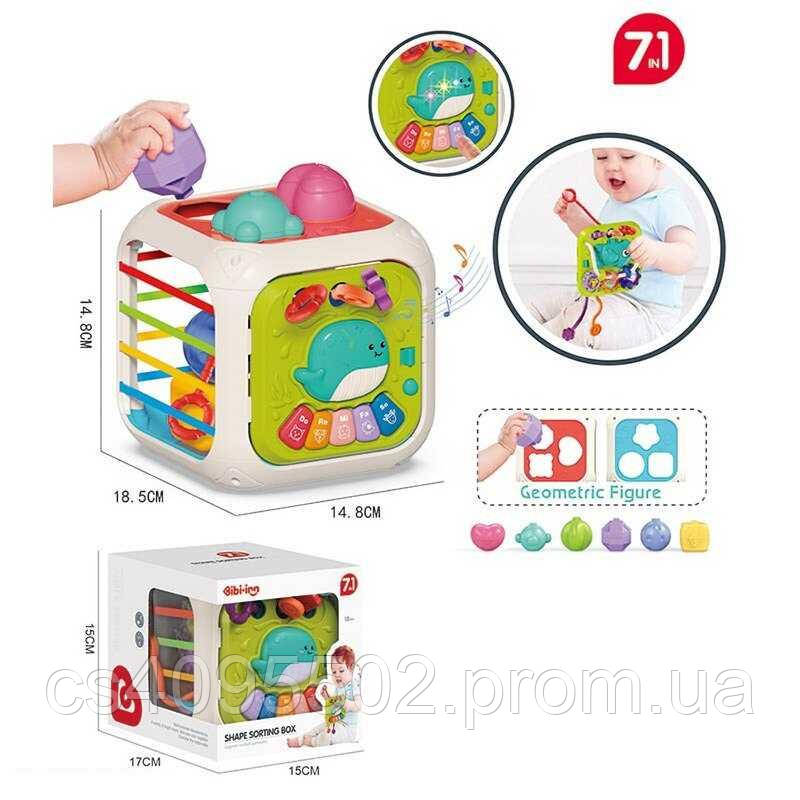 Музичний куб 688-87 7 в 1: піаніно, пальчикові ігри, брязкальце, сортер, рухомі шестерні, пірамід…