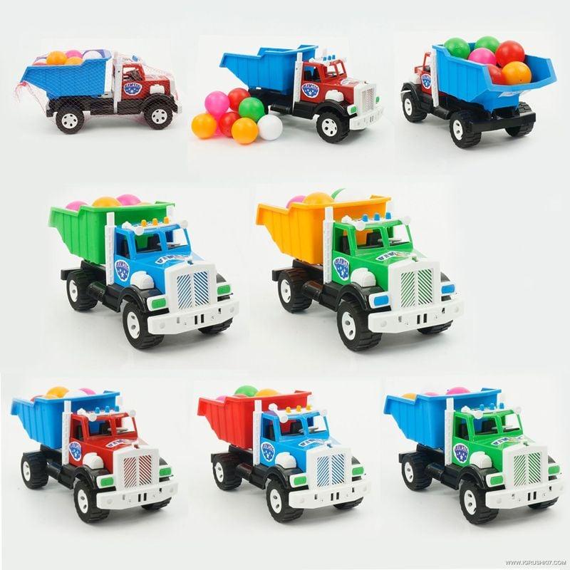 Самосвал с подъемным кузовом. Предназначен как для игры в доме, так и для игры на улице.Машина «Бамсик» в комплекте шариками дает возможность ребенку не просто катать машинку, но и перевозить шарики, осваивая тем самым работу техники.