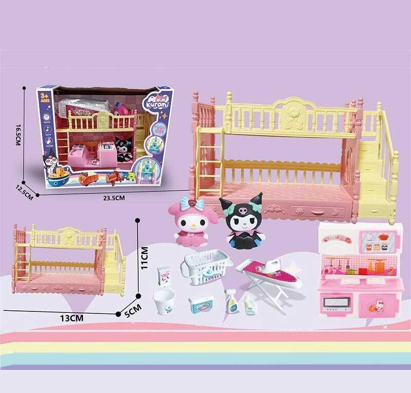 Поринь у затишний світ гри разом із милими героями! Тут є все – двоярусне ліжечко, кухня, прасувальна дошка та аксесуари для прибирання, аби кожна гра перетворювалась на справжню пригоду.