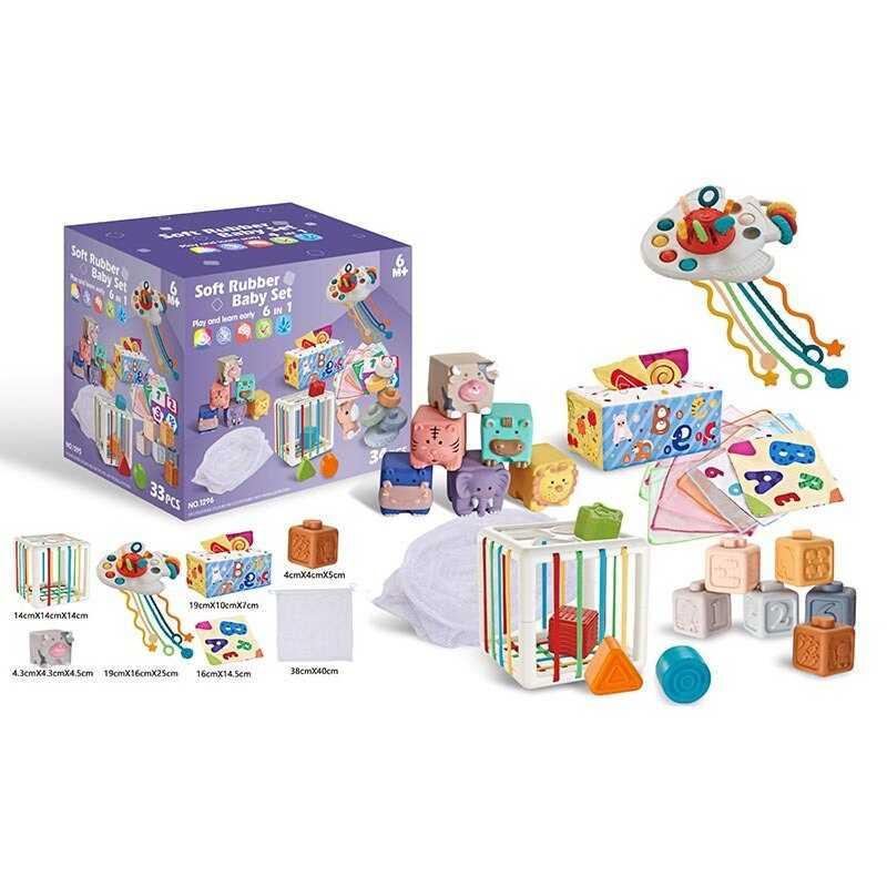 Одним з найважливіших етапів у житті людини є ранній розвиток, коли кожен має сповна розвинути усі свої органи чуття та усі моторні функції, тому цей етап навчання має вплив на усе подальше життя людини. Із цим набором для розвитку, ваш малюк матиме чудовий і веселий початок цього навчання, адже в одному наборі зібрані іграшки, які допоможе дитині розвинути дрібну моторику її рук із різноманітними пальчиковими іграми та когнітивні здібності із наборами фігурок і кубиків, які можна складати. Також цей набір має широкий спектр текстур, кольорів та звуків, що допоможе малюкові розширити його аудіо-візуальне та тактильне сприйняття навколишнього світу.