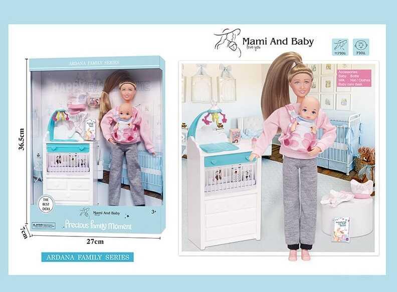 Ляльки завжди були для дівчат способом втілити фантазії про своє майбутнє, прожити різні життєві сценарії та ролі у процесі гри. Ця лялька втілює у собі такий важливий етап життя жінки як материнство. Але ця молода мама є справжньою модницею, яка слідкує за трендами не тільки для себе, але й для свого малюка. Обидві ляльки вдягнені у трендовий домашній одяг. Лялька має рухливі шарнірні суглоби, тому може приймати безліч реалістичних поз, а також густе довге волосся, з якого буде так весело й цікаво робити модні зачіски.