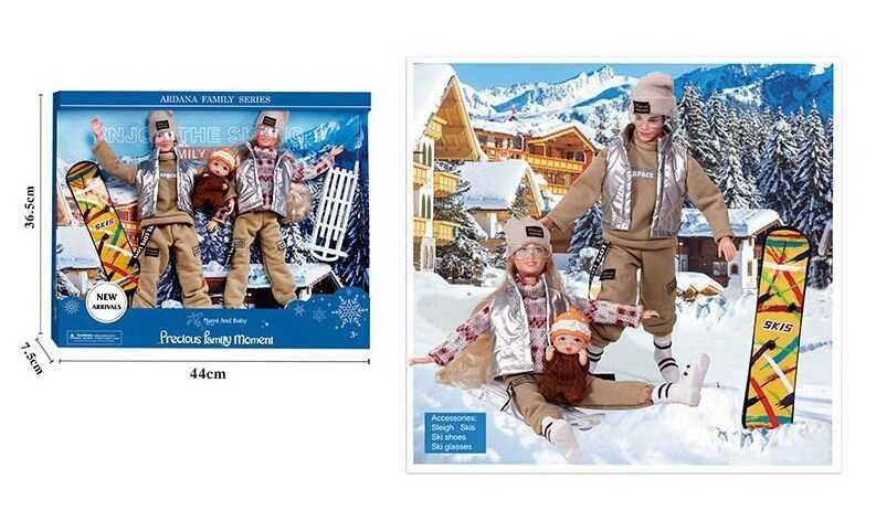 Набір ляльок A 807 A “Спортивна сім`я”, 3 ляльки, висота 30см, сноуборд, сани, окуляри, знімний о…