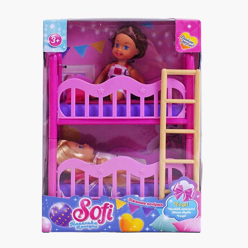 – включає 2 ляльки та двоповерхове ліжко з приставною дробиною;