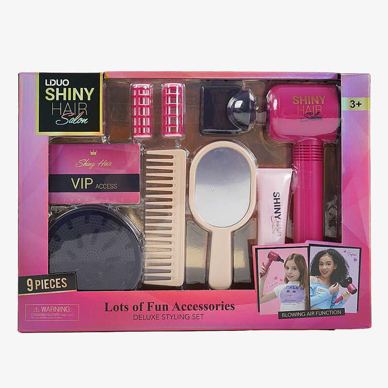 До нього входять всі необхідні атрибути, що допоможуть доповнити образ стильною зачіскою. Запрошуйте до розваги подружок та відкривайте свій салон краси!