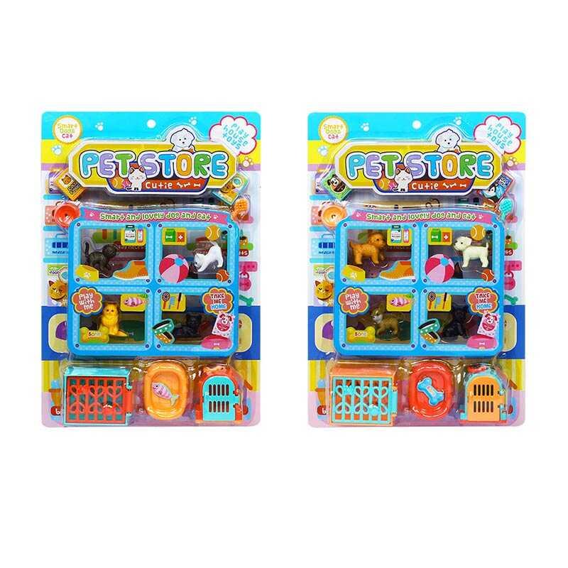 Набір тварин 878-75 A 2 види, 4 фігурки тварин, переноски, мисочки, корм, на листі