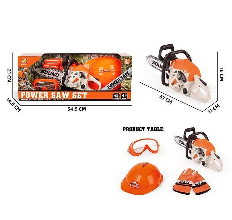 Пила працює на батарейках та має додаткові ефекти: під час роботи ланцюг з гумовими зубцями рухається, лунає гучний характерний звук роботи двигуна. Інструмент не має гострих кутів та є цілком безпечним для дітей.