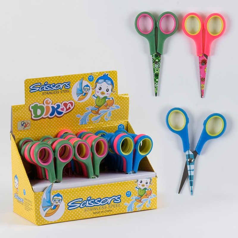 Тип – канцелярські ножиці;Матеріал ручок – пластик;Матеріал леза – метал;Вид – 3 кольори;Довжина – 12 см;У блоці – 24 штуки.