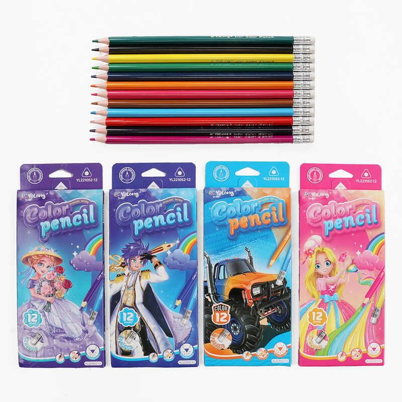 Кількість у пакуванні – 12. Матеріал корпусу – деревина. Пакування – в коробці. Олівці мають стирачки.