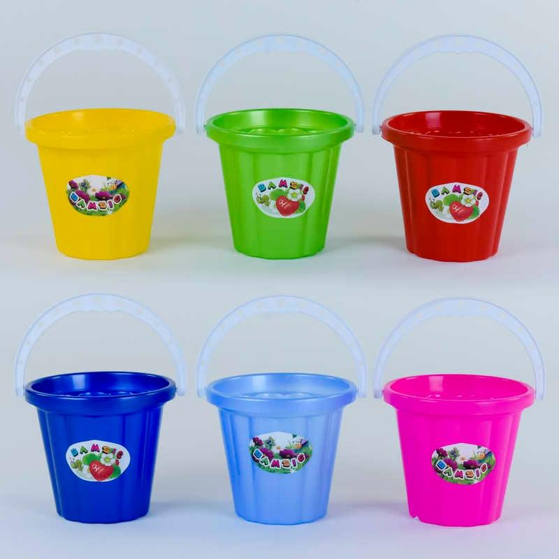Яскраве відерце у формі вежі старовинного замку зі зручною ручкою для гри в піску та саду. Відро виконане із пластмаси, з наклейкою.